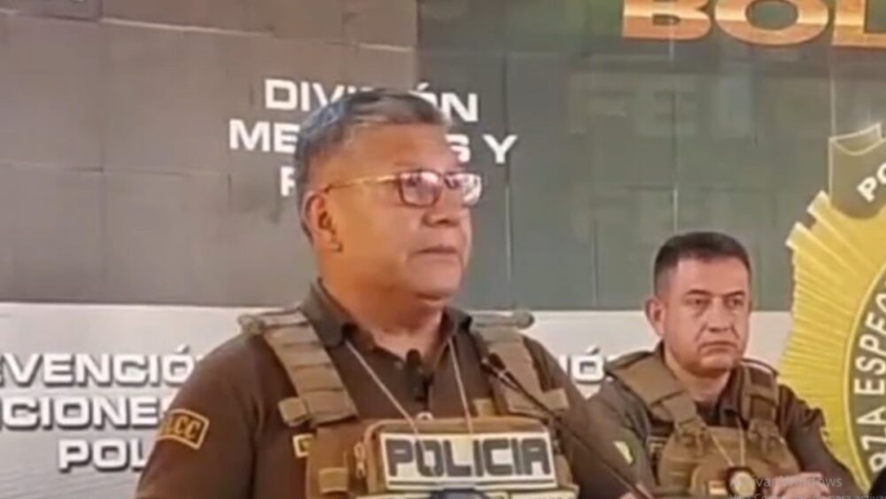 “Nos permitimos informar la aprehensión de tres personas (…) identificados como funcionarios policiales en un hecho de privación de libertad, cohecho, extorsión y tenencia de sustancias controladas agravada”, declaró el director nacional de la FELCC, Walter Sosa.